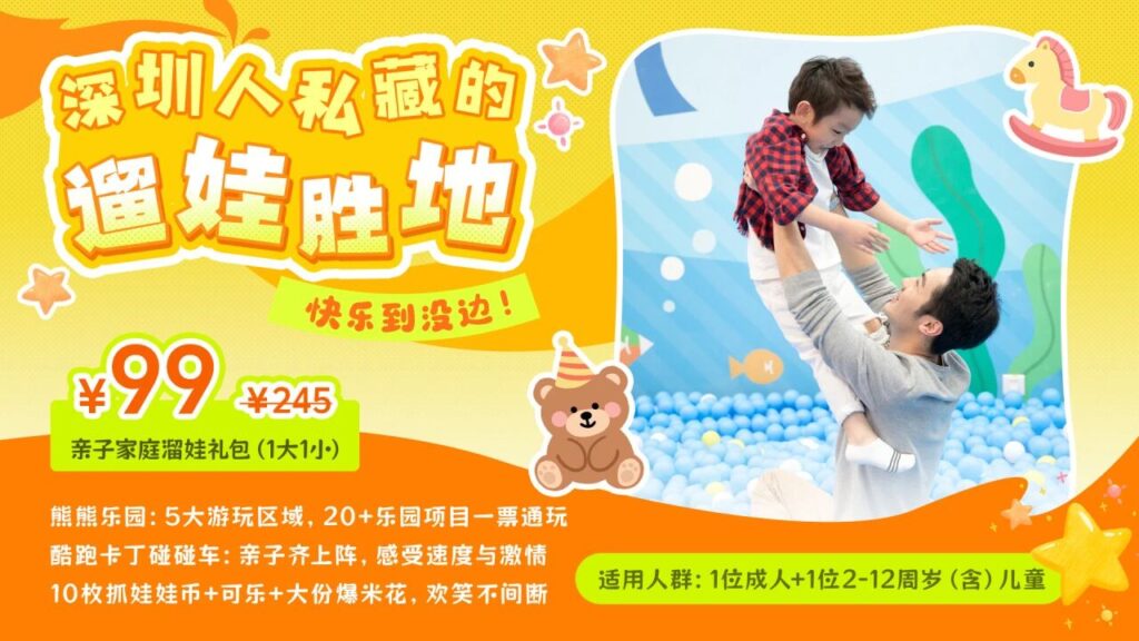 深圳 深圳周末遛娃好去處!在深圳不到100塊帶孩子玩遍整個熊熊樂園,父母解放雙手,孩子快樂體驗 銀富環球旅遊有限公司 24 11 月, 2025 18 次瀏覽 分享至: 深圳寶安華強廣場裏一個室內遛娃勝地,這裏包含了熊熊樂園、卡丁車、夾娃娃、影院零食,大人小孩都可以在裏面盡情玩耍。一站配齊,一票承包全家的歡樂時光!📍熊熊樂園(深圳市寶安區華強廣場)📍地址:深圳市寶安區福海街道鳳塘大道153號營業時間:10:00-21:00交通方式: 地鐵:11號線塘尾地鐵站B口 自駕:寶安華強廣場停車場 包車直達前往👉點擊此處 (圖片來源微信公眾號深圳本地宝) 優惠自由行套票立即預訂👉點擊此處 【套票價格】優惠價:99元*項目包含:① 熊熊樂園1大1小親子票一張(入園票)② 酷跑卡丁碰碰車親子票一張(1大1小暢玩5分鐘)③ 夾激賞抓娃娃幣10個 ④ 中影南方影城中可樂1份+32oz爆米花1份(不含電影票,觀影需自費)四大項目一票通玩!從3樓的熊熊樂園一路玩到6樓的卡丁車,中途還能順路抓娃娃、領爆米花可樂。遛娃變得輕輕松松! 預訂鏈接:https://m.bendibao.com/jingdian/xiongxiongleyuanbaoanhuaqiangguangchangdian/ (圖片來源微信公眾號深圳本地宝) 平價機票點擊下方圖片立即預訂👇 「熊熊樂園」海洋波波池、蹦床、旋轉木馬……好玩的項目多到眼花繚亂✨✨還有孩子們喜歡的「熊大」和「熊二」,簡直就是為孩子打造的夢幻童話鎮 (圖片來源微信公眾號深圳本地宝) 「酷跑卡丁碰碰車」親子齊上陣,你追我趕,來一場速度與「碰撞」的雙重體驗 (圖片來源微信公眾號深圳本地宝) (圖片來源微信公眾號深圳本地宝) 「角色扮演」這裏是屬於每一位孩子的夢想啟蒙地!在家長的陪伴下,體驗各類職業的樂趣。穿上製服成為消防員,當小醫生給寵物看病,或是在「建築學院」變身建築工,親身體驗「挖礦」的快樂~ (圖片來源微信公眾號深圳本地宝) (圖片來源微信公眾號深圳本地宝) (圖片來源微信公眾號深圳本地宝) 「運動科普」來運動科普區,體驗「和自己握手」的神奇裝置,見證「電流」在指尖流轉的奇妙現象……活力競技場,體驗互動籃球、滾球酷跑等遊戲,讓孩子全力奔跑、盡情撒歡~ (圖片來源微信公眾號深圳本地宝) (圖片來源微信公眾號深圳本地宝) 「休閑放松」玩累了帶娃去熊熊影院看會兒動畫片,或是在熊熊書屋靜心閱讀,孩子專註,大人也能趁機喘口氣~ (圖片來源微信公眾號深圳本地宝) 最後去中影南方影城領一份中可樂1份和32oz爆米花1份,結束美好的一天啦! (圖片來源微信公眾號深圳本地宝) 遛娃禮包內含10枚抓娃娃幣,來「夾激賞」,考驗你的今日手氣!奶龍、庫洛米、卡皮巴拉,Hello Kitty……全都是孩子們喜歡的娃娃,豐富任挑 (圖片來源微信公眾號深圳本地宝) 遛娃不發愁,直接抄作業就對了!僅需99元,就能一站式遛娃。如此高性價比的方案,千萬不要錯過啦~ (圖片和資料來源微信公眾號深圳本地宝) 更多優惠套票點擊下方圖片立即預訂👇